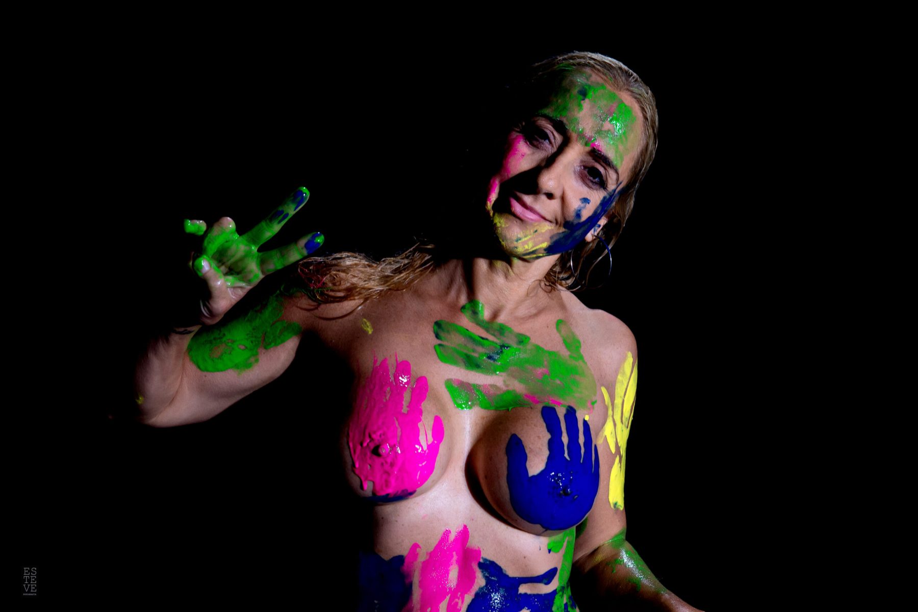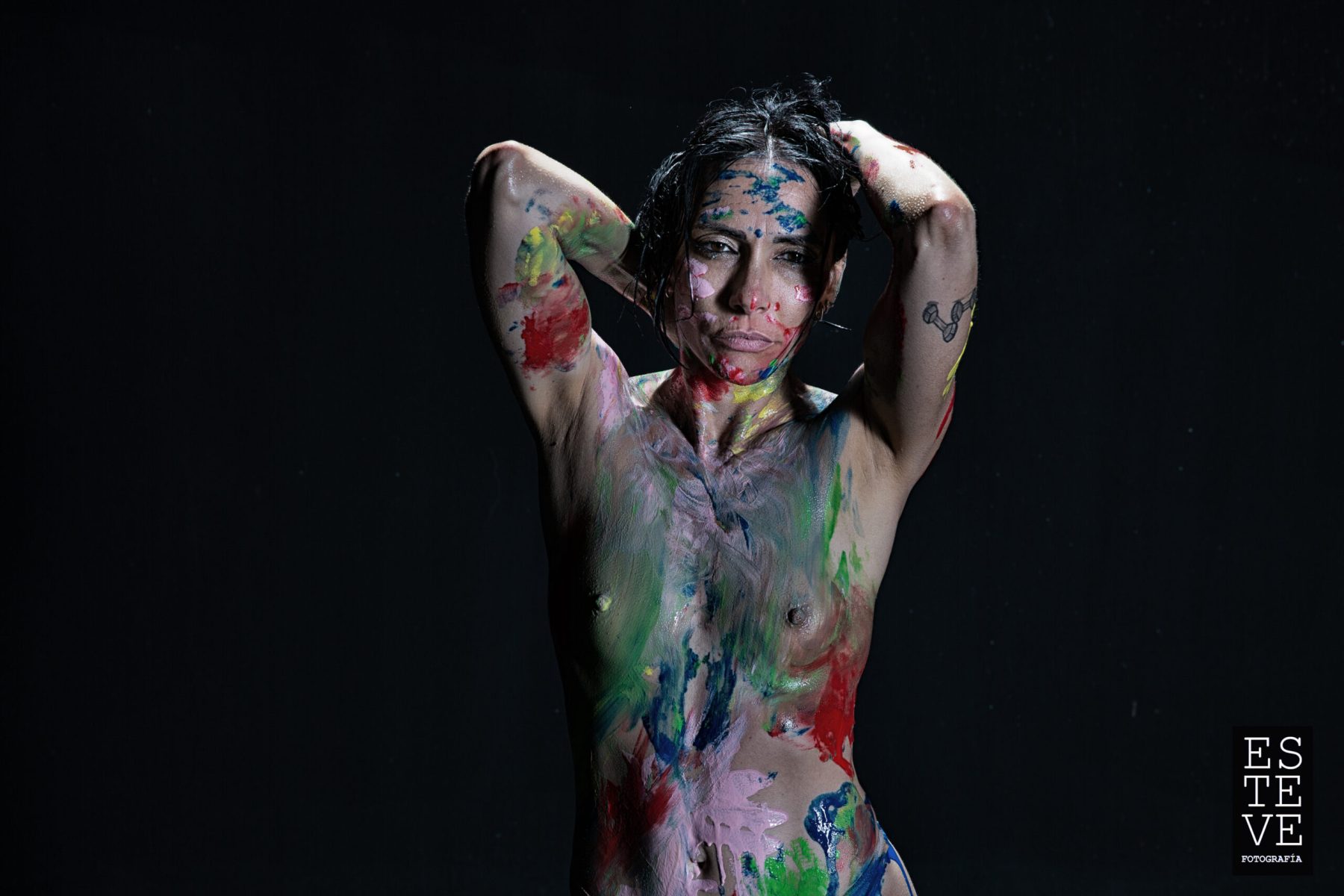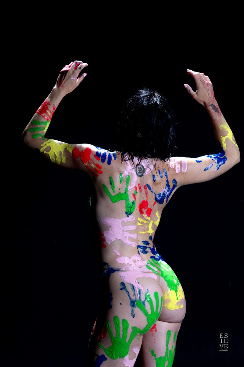 La mujer es un lienzo en el que la sociedad se expresa. Y ella, se deja pintar. De hecho, también tiene las manos manchadas. Es lo que ha aprendido. La educación, el trabajo, la cultura van poniéndole sus huellas sobre pecho, nalgas, vientre o espalda. Hay que aguantar, hay que ser el cuerpo, el útero, la casa, la que llega a todo, la mejor, tener hijos, los mejores hijos, ser las mejores madres, demostrar que en el trabajo también pueden con todo, ser de mil colores y preciosas y seguir brillando, ser la obra de arte resultante de toda esa mezcla de color… aunque en el fondo ella, ellas, solo quieran ser y ya está.