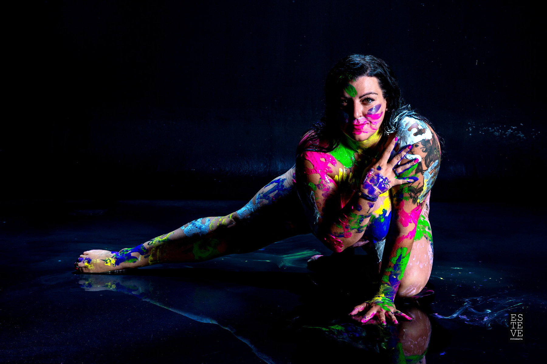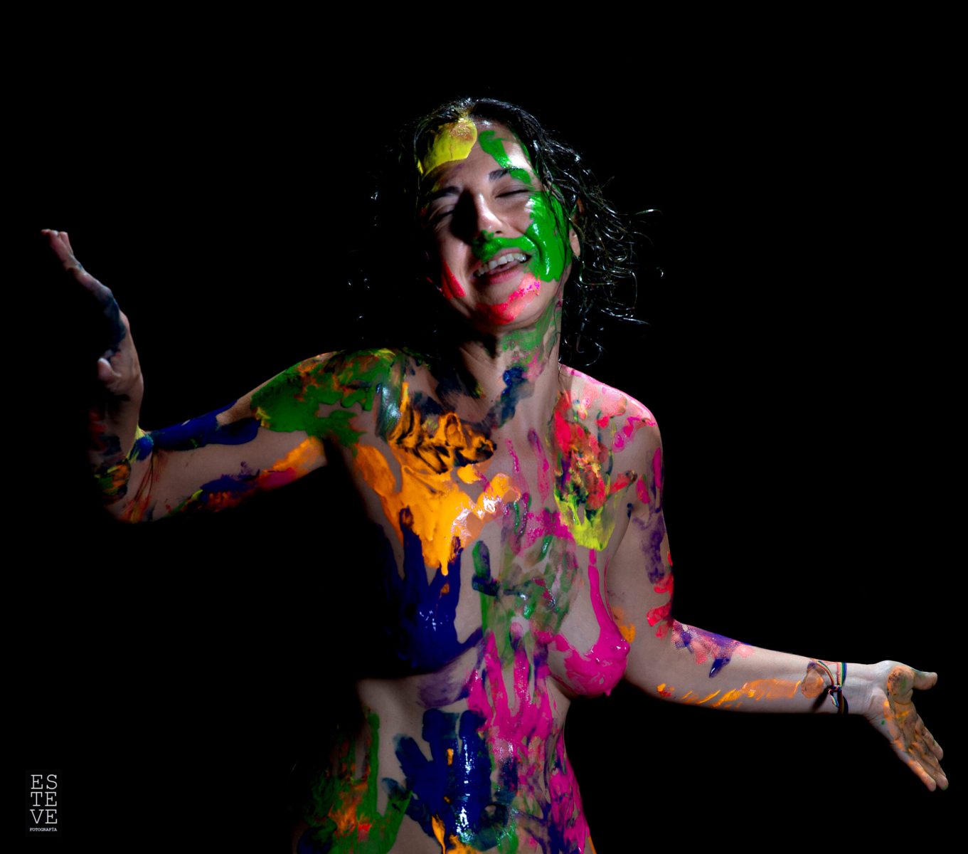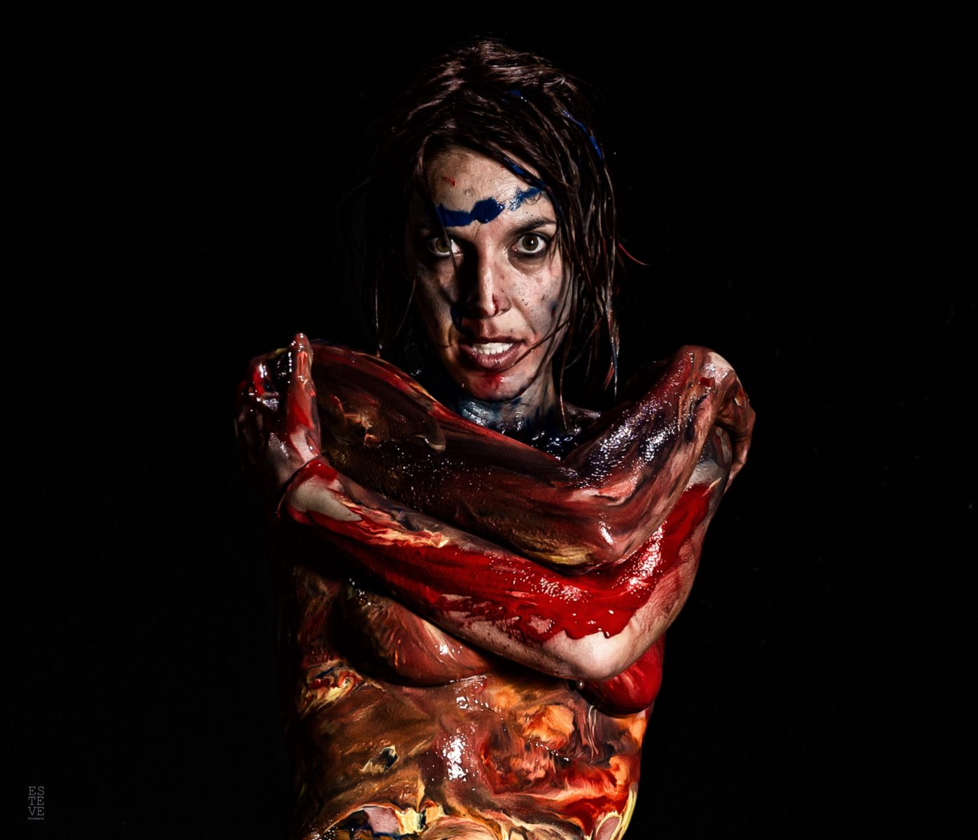 La mujer es un lienzo en el que la sociedad se expresa. Y ella, se deja pintar. De hecho, también tiene las manos manchadas. Es lo que ha aprendido. La educación, el trabajo, la cultura van poniéndole sus huellas sobre pecho, nalgas, vientre o espalda. Hay que aguantar, hay que ser el cuerpo, el útero, la casa, la que llega a todo, la mejor, tener hijos, los mejores hijos, ser las mejores madres, demostrar que en el trabajo también pueden con todo, ser de mil colores y preciosas y seguir brillando, ser la obra de arte resultante de toda esa mezcla de color… aunque en el fondo ella, ellas, solo quieran ser y ya está.